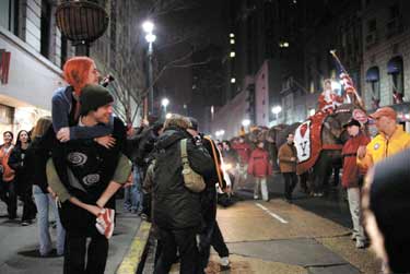 "One might ask why I was lighting the entire room rather than the actors," she continues, "and it was because the two cameras shooting simultaneously were moving in the room according to Michel's instructions. He had both operators [listening] on ear rigs, through which he would extemporaneously ask them to pan or move into a close-up. I must admit, we were less than enthusiastic about the ear rigs." To help the actors maintain the flow of a scene, Gondry often shot entire scenes from beginning to end. Covering the scenes in dual moving master shots while keeping the opposing camera out of frame demanded spontaneous choreography by A-camera operator Chris Norr and B-camera operator Peter Agliata - and plenty of 400' mags. An 11-page scene that depicts Joel and Clementine's first meeting on Montauk was especially arduous, according to Kuras. "We were shooting on a real moving train on real tracks, and we only had a certain amount of time to get the scene. We had to use 1,000-foot mags to cover the scene in a one-shot deal, which is a killer way of shooting because you always have to be 'on.' While rolling, Michel would often ask us to move the angle of the shot. We didn't know whether he would use these shots as one move, so we tried to make everything usable. With all of that shifting, squatting and standing, working with the weight of 1,000-foot mags, and trying to slip between train seats with the assistant holding focus, the camera movement is not always the most graceful." With a laugh, she adds, "In the final cut, not surprisingly, Michel doesn't use any of the moves." Inspired by the French New Wave, the filmmakers used some unusual methods to accomplish many camera moves. "Michel was very interested in calling back to Godard, whose work I know very well, by having us handhold the camera while sitting in a wheelchair," says Kuras. "My key grip, Bob Andres, and I did all these tests that had me in a wheelchair or in a chariot dolly, running all over sidewalks and up and down curbs, to see how bad it would be, especially on cobblestone streets. The wheelchair dolly move wasn't always perfectly smooth, but there was often real beauty in that low-angle, wobbly movement, and I was willing to go with it. With the entire film shot handheld, we ended up using sled dollies, wheelchairs and chariot dollies, but no traditional dollies at all." Occasionally the overlapping demands of long takes, naturalistic lighting and cramped locations resulted in a downright comical configuration behind the camera. For instance, instead of staging a car scene with a process trailer, Kuras, Norr, two cameras and one assistant squeezed into the rear passenger seat to film both angles of a scene in which Carrey drives a car for real and Winslet rides along. The bulky mags required for the long take wouldn't fit inside the car, so the crew hung them out the windows, which then had to be boxed in for sound. "But as usual, we were shooting with only available light," says Kuras, "so we had to build a tiny muslin-and-Plexiglas exterior [for the mags], or we would have been totally dark in the back. And of course, the car wasn't a Lincoln Continental with four doors, it was a tiny Toyota! [First AC] Carlos Guerra was sitting between the two cameras, pulling focus on both at the same time. Talk about going in the completely opposite direction of a studio picture!" However, Kuras was able to stylize a sequence she refers to as "the chase scene." As Joel burrows deeper into his own memories in a vain attempt to "hide" what remains of Clementine from the Lacuna technicians, the scenes' quality of light becomes distinctly dramatic. "We didn't want to make it a huge departure from the film's look, but we wanted to signal to the audience that we were in the tunnel of the mind," Kuras explains. "Michel's visual analogy, which was brilliant, was inspired by the French film Le Boucher: a car is driving on a deserted country road at night, and you can only see what's illuminated by the throw of the headlights. When you're remembering something, you don't get a full picture; you only see certain glimpses of the scene in your head, depending on what you're focusing on. So, for our 'memory light,' we attached a single clip light on top of the camera for closer shots; we used a Par can to similar effect in the wide shots." Kuras filmed Eternal Sunshine on Fuji Reala 500D, mainly because she liked its cyan bias in the shadow areas and the smoothness and saturation of the colors and grain. "Although cyan in the blacks is perhaps not 'traditionally accepted,' I actually built additional cyan into the shadows at the post stage, because I really liked the look and color palette created by warm sodium-vapor yellow in conjunction with cyan green and cyan blue," she says. She made maximum use of the Reala by pushing it one stop and eschewing correction filters on her Zeiss Superspeed lenses. At some key moments, the filmmakers simply let the frame go dark. "Michel really wanted this to feel like a European film, and many of those have shots where everything is dark and you can only glimpse one thing in the frame," says Kuras. "I admire the way Nestor Almendros [ASC] used available light, and the way Robby Műller still does. They and Raoul Coutard are some of the most amazing cinematographers. They use light sparingly, and I ascribed to that [approach] on this film." The filmmakers' straddle between frank naturalism and visual metaphor didn't stop when Eternal Sunshine wrapped. Indeed, when Kuras and Gondry first began to work out the details of Eternal Sunshine, they decided to finish the film with a digital intermediate (DI). Kuras had used the process on two prior projects, Spike Lee'sJim Brown: All American (Post Process, AC Sept. '02) and Rebecca Miller's Personal Velocity (AC April '02). On Jim Brown, Kuras used the DI to provide a high-quality blowup on a short schedule; onPersonal Velocity, she used it to sweeten her original DV